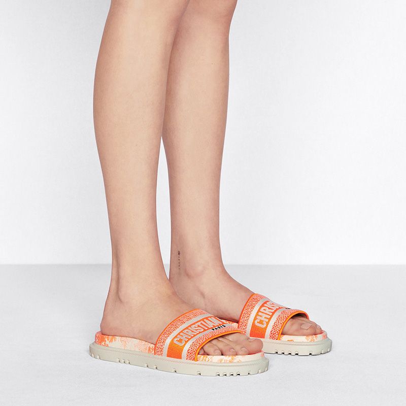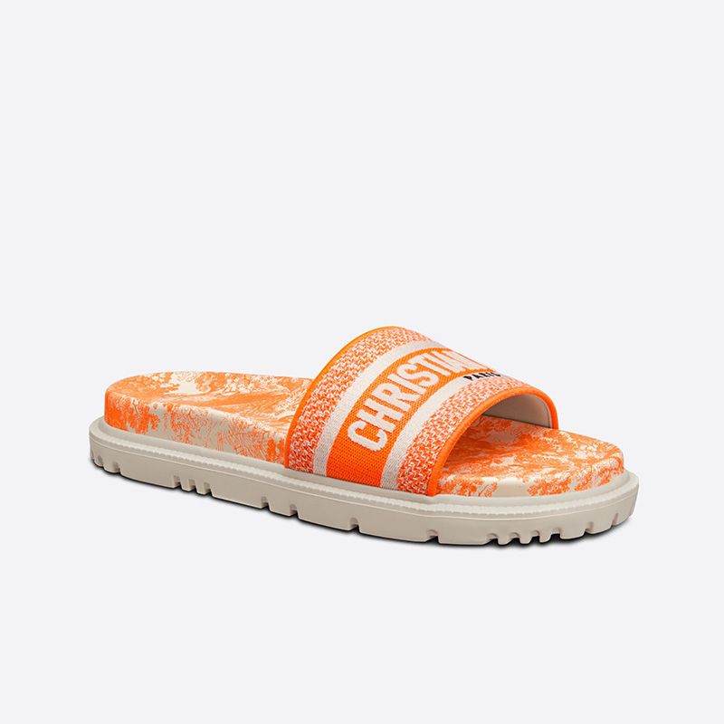 Christian Dior Dway Slides Women Toile De Jouy Motif Cotton Orange