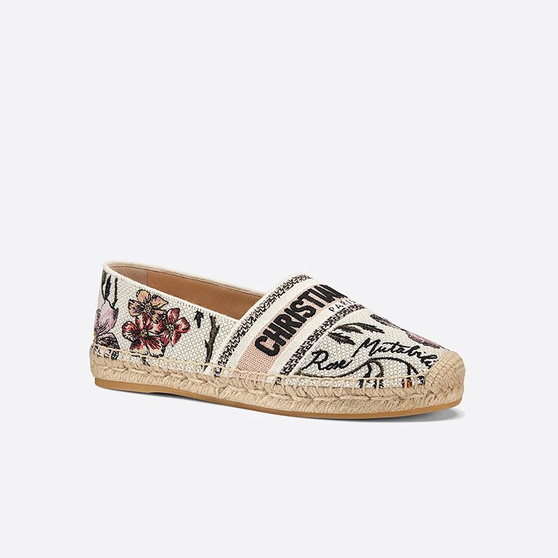 Innovation meets style in the Christian Dior Granville Espadrilles for women, featuring the stunning Rosa Mutabilis motif on a luxurious white canvas. This elegant footwear embodies sophistication, making it a perfect addition to any fashion-forward wardrobe.
