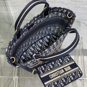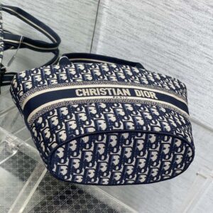 The captivating blue hue complements the iconic Oblique motif, creating a harmonious blend of style and functionality. Prominently displayed on the front is the Christian Dior Paris signature, a hallmark of luxury that speaks volumes about quality and heritage.