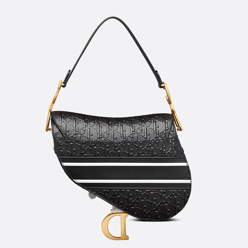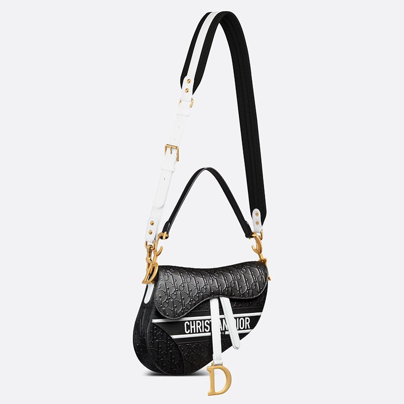 Crafted from exquisite Oblique Embossed Calfskin, this Saddle Bag showcases a stunning Black/White color scheme that complements any outfit. The iconic CD signature elegantly graces the strap, affirming its status as a true designer piece. Designed for both style and practicality, it features a secure magnetic D stirrup closure, ensuring your belongings remain safe while you navigate your day.