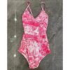 Adorning the swimsuit is the eye-catching Mizza motif, a hallmark of Christian Dior’s artistic vision. It’s not just a swimsuit; it’s a statement piece that captures the essence of luxury. The design includes a chic contrast band that enhances the elegant silhouette, making it perfect for both lounging by the pool and adventurous beach days.