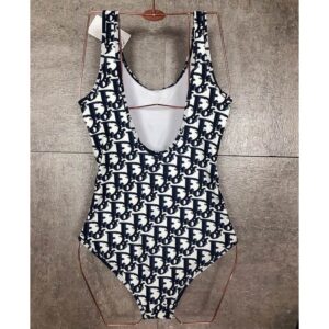 The signature Christian Dior branding adds a touch of prestige, making it not just a swimsuit, but a collector’s item for fashion enthusiasts. Complemented by a stylish contrast band, this piece ensures that you stand out at any poolside or beach event.