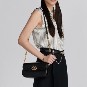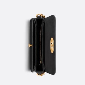 Featuring a sleek black design, this exquisite bag is crafted from high-quality box calfskin, ensuring durability and a refined appearance. An embossed 30 Montaigne signature adorns the back, reflecting Dior’s legacy and commitment to quality.