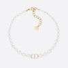 Embrace sustainability in your jewelry collection with the exquisite Dior 30 Montaigne Necklace. This stunning piece showcases a harmonious blend of materials, combining a lustrous gold-finish metal with elegant white resin pearls and sparkling white crystals. The necklace features the iconic J’ADIOR signature, adding a touch of sophistication to any outfit.