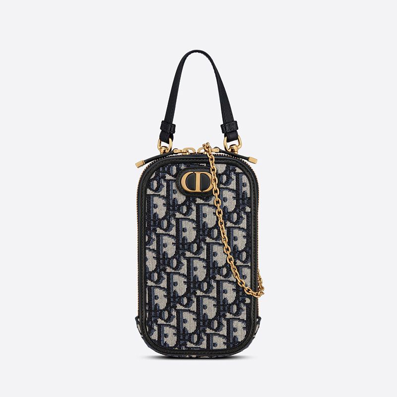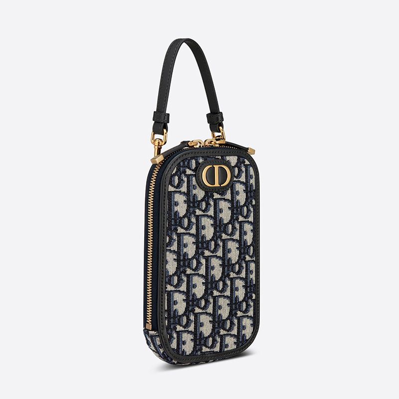 Embodying the timeless elegance of the Dior heritage, the Dior 30 Montaigne Phone Holder in Oblique Motif Canvas Blue is not just an accessory but a statement of sophistication. Picture a day in the life of a modern individual who seamlessly blends work and leisure; this phone holder is the perfect companion, elevating their style from morning meetings to evening outings.