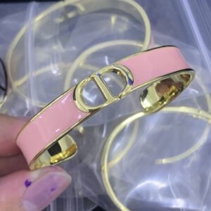 Introducing the Dior 30 Montaigne Thin Bangle, a breathtaking piece that beautifully combines elegance and contemporary style. Crafted with a stunning gold finish metal, this bangle showcases the signature CD emblem, making it a symbol of timeless luxury. The delicate pink lacquer adds a soft touch, perfect for those who appreciate a hint of color in their accessories.