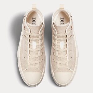 Immerse yourself in the world of luxury with the Dior B23 High-Top Sneakers, designed for both men and women. Featuring a striking beige canvas, these sneakers showcase the iconic Cactus Jack Dior motif, perfectly merging fashion with artistry. The standout patchwork-effect sole boasts a bold ‘DIOR’ signature on the side, adding a unique flair that speaks to discerning tastes.