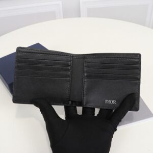 Crafted from high-quality canvas, the wallet features the iconic DIOR signature prominently displayed on the front, symbolizing both luxury and sophistication. Inside, you will find a well-organized layout that includes two bill holders, two flat compartments, and a total of eight card slots, providing ample space for your essentials.