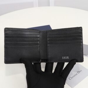 Inside, the wallet is equally impressive. It boasts a luxurious embossed DIOR logo along with ample storage options. Organize your finances effortlessly with 2 bill holders, 2 flat compartments, and 8 card slots, ensuring everything you need is stylishly at your fingertips.