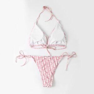Elevate your swimwear collection this summer with the stunning Dior Bikini Women Toile De Jouy with Bee CD Motif in a vibrant yellow hue. This exquisite two-piece bathing suit showcases a chic triangle top paired with stylish briefs, both crafted from high-quality Lycra adorned with the iconic Toile De Jouy motif. The luxurious design is completed with charming side lacing on the briefs, making it a true standout by the pool or beach.
