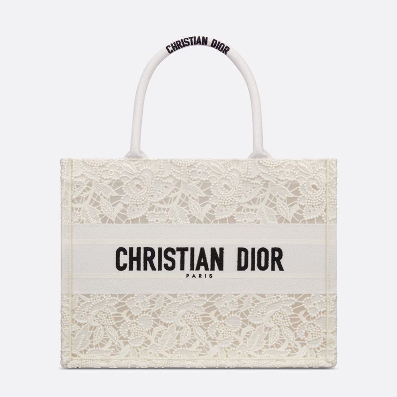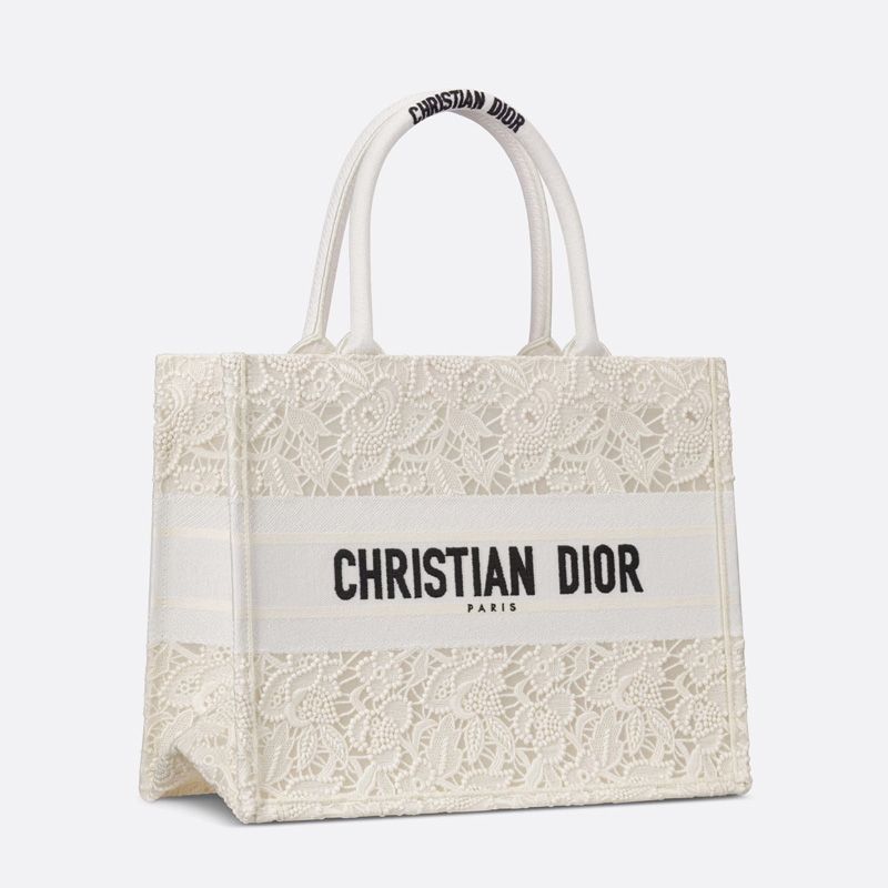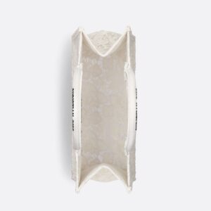 Dreams of elegance and adventure come to life with the Dior Book Tote D-Lace Motif Macrame in White. This stunning tote showcases a meticulous macrame embroidery featuring the iconic D-Lace motif, seamlessly blending artistry with functionality. Each bag is adorned with the distinguished Christian Dior Signature, making it a testament to luxury and style.