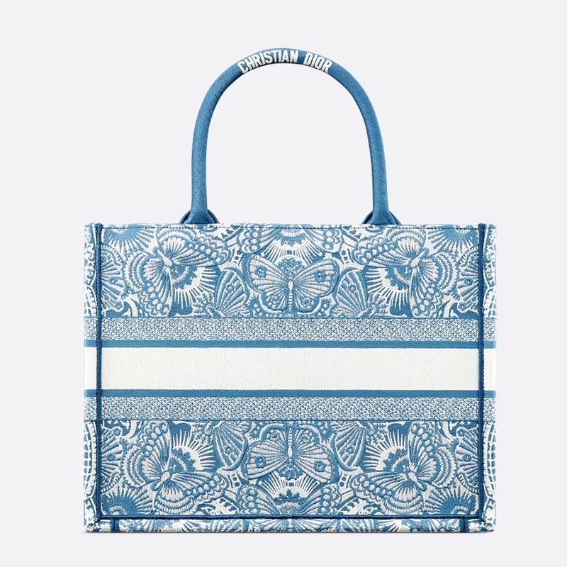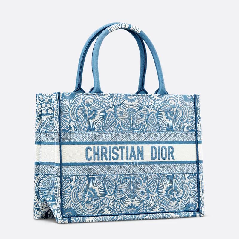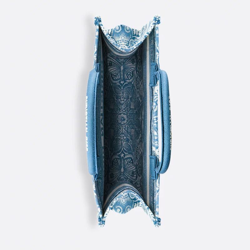 Embrace the beauty of the Dior Book Tote in D-Butterfly Paisley Motif Canvas Blue, where fashion meets functionality, and let your style speak volumes.