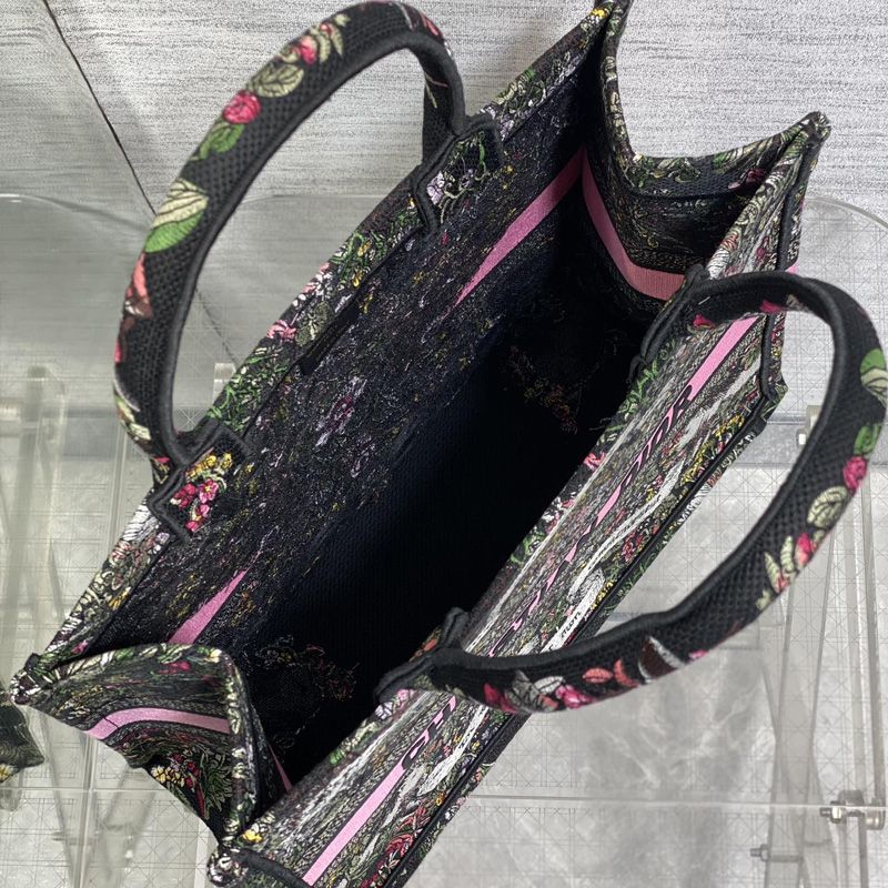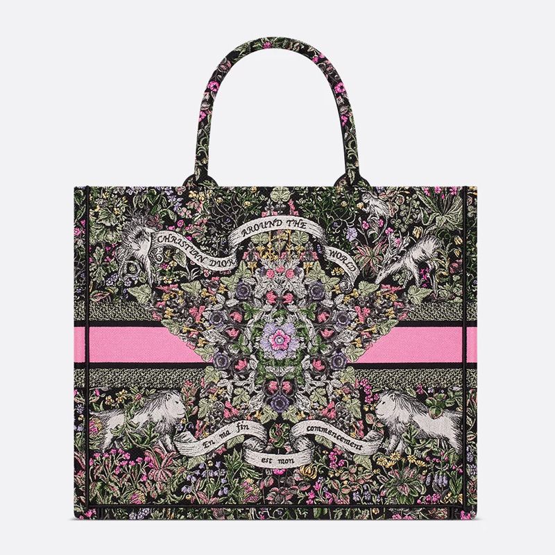 Embrace sophistication with the Dior Book Tote In Flowers Around the World Motif Canvas Black. This exquisite tote is not just a bag; it’s a statement piece that captures the essence of modern elegance. Adorned with a vibrant floral design and the iconic Dior Around the World motif, this tote is sure to turn heads wherever you go.