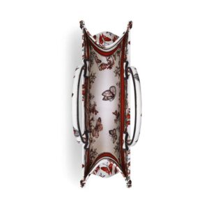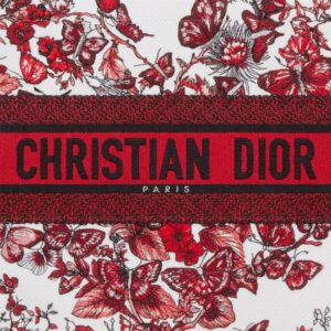 The Dior Book Tote In Le Coeur des Papillons Motif Canvas in stunning White and Red is a perfect blend of elegance and functionality. Crafted from high-quality canvas adorned with the enchanting Le Coeur des Papillons motif, this tote showcases the iconic Christian Dior signature prominently on the front, making it a standout accessory for any fashion-forward individual.