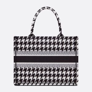 Dior Book Tote In Macro Houndstooth Motif Canvas Black