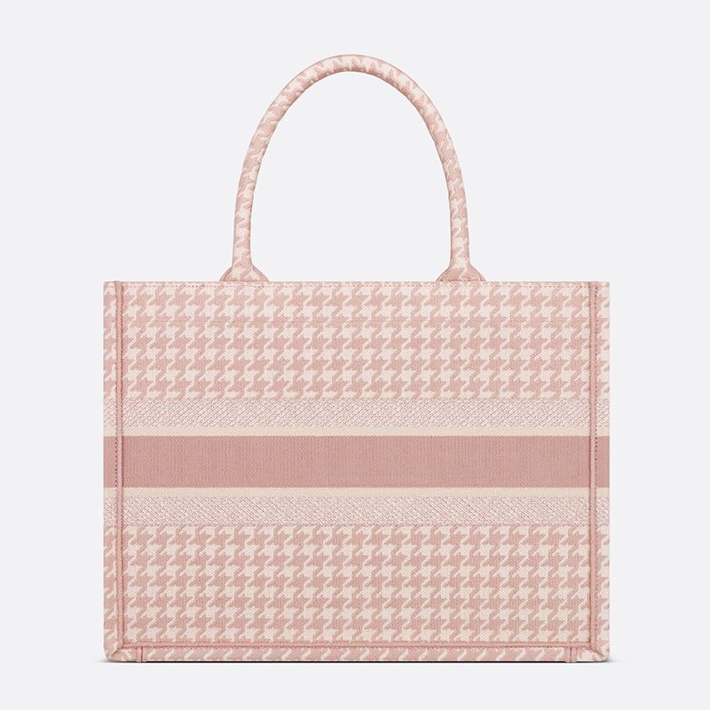 Dior Book Tote In Macro Houndstooth Motif Canvas Cherry