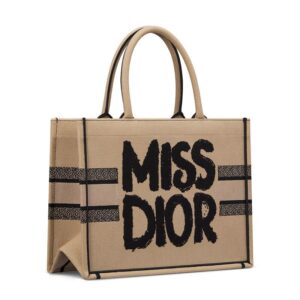 Embark on a stylish adventure this season with the Dior Book Tote in the enchanting Miss Dior Graffiti motif. This tote isn’t just a bag; it’s a passport to elegance and versatility, perfect for any occasion. Crafted from high-quality beige canvas, it features the iconic Miss Dior Graffiti signature boldly displayed on the front, making a striking statement wherever you go.