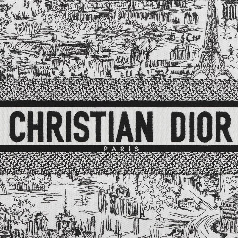 Introducing the Dior Book Tote in a stunning Paris Allover Motif Canvas, this exquisite bag is a statement piece for any fashion enthusiast. Crafted in a pristine white hue, the tote features the iconic Christian Dior signature prominently displayed on the front, exuding elegance and luxury.