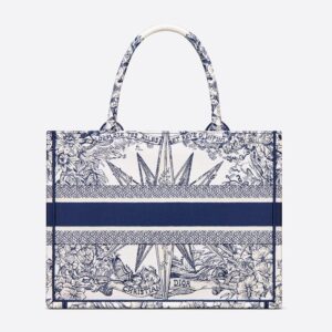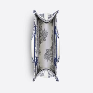 Innovation meets elegance with the Dior Book Tote in a stunning Reve d’Infini motif. This exquisite bag, adorned in a striking blue hue, is meticulously crafted from premium canvas featuring an intricate embroidery that tells a story of artistry and sophistication. The iconic CHRISTIAN DIOR PARIS signature graces the front, adding a touch of prestige and charm.