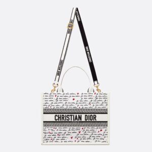Dior Book Tote with Strap In Dioramour Je Vous Adore Motif Canvas White
