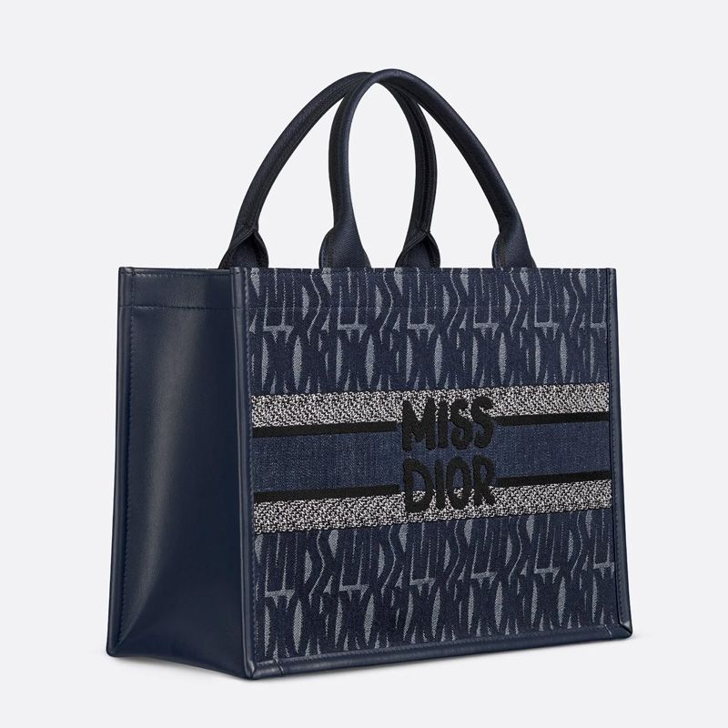 Dior Book Tote with Strap In Miss Dior Allover Motif Denim and Calfskin Blue