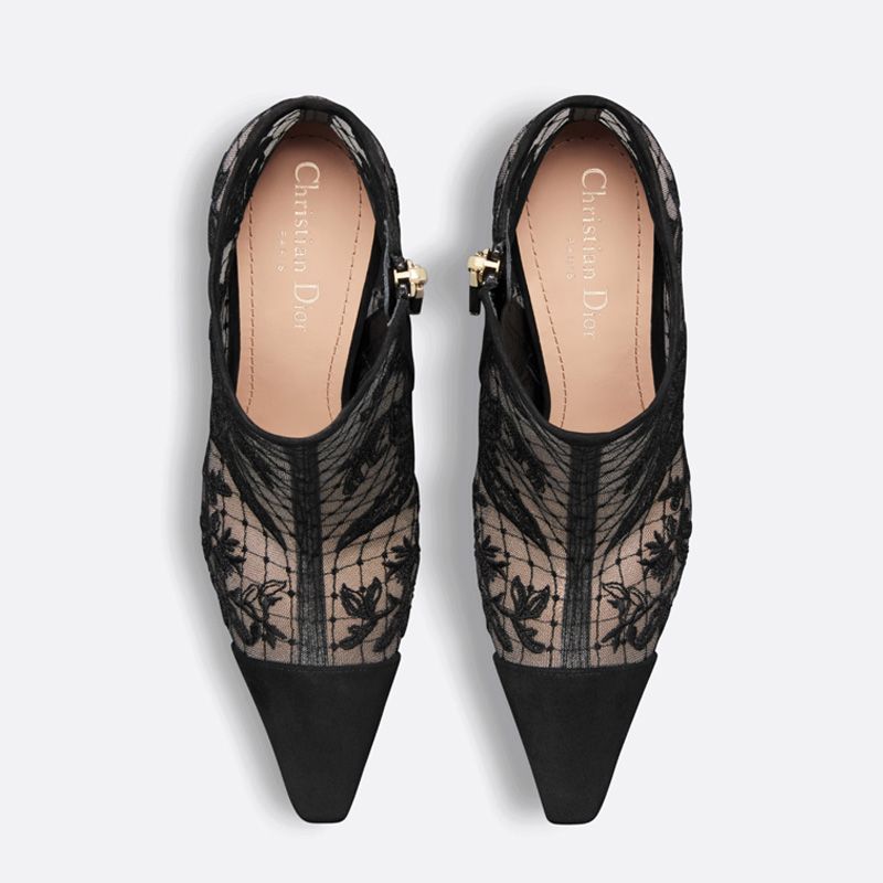 Dior Capture Heeled Ankle Boots Women Butterfly Motif Transparent Mesh Black