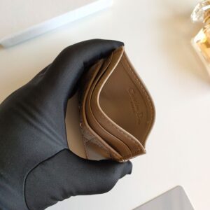 The Taupe Dior Card Holder features a refined design with the iconic CD signature elegantly displayed on the front, making it a statement piece that catches the eye. With five card slots, it offers practical storage without sacrificing style, ensuring you have your essentials at hand whenever you need them.
