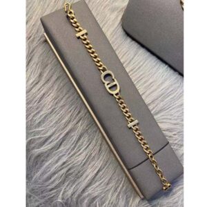 The bracelet features a luxurious gold finish, showcasing the hallmark of Dior sophistication. Its metal construction ensures durability while maintaining a lightweight feel, making it a comfortable accessory for daily wear or special events.
