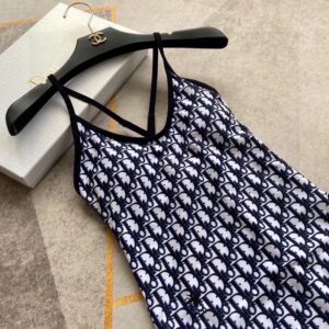 What defines modern elegance in swimwear? The Dior Crisscross Swimsuit for Women embodies a legacy of sophistication and style, skillfully blending functionality with high fashion. Crafted from premium Lycra, this navy blue swimsuit showcases the iconic Dior Oblique motif, making it a standout piece for beach outings or poolside lounging.
