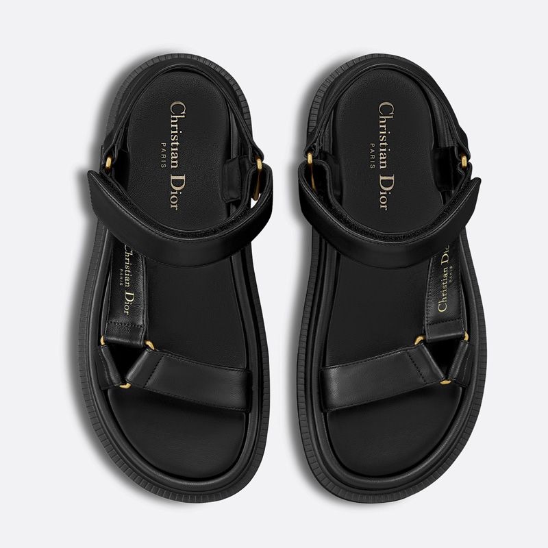 Looking for the perfect sandals that combine elegance and comfort? Step into the spotlight with the Dior D-Wave Sandals for women, crafted from luxurious calfskin in a sophisticated black hue. Picture yourself at an upscale event, where every detail counts, and these sandals effortlessly elevate your ensemble.