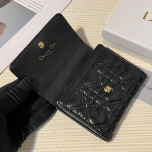 Step into a world of elegance with the Dior Flap Card Holder in luxurious Cannage Lambskin Black. This exquisite piece is not just a card holder; it’s a statement of sophistication and style. The rich black lambskin is adorned with the iconic Cannage topstitching, reflecting Dior’s timeless craftsmanship.
