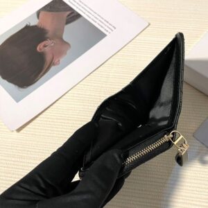 Featuring a distinctive CD signature on the front, this card holder is more than just a practical item; it’s a statement of style and sophistication. Inside, you’ll find two gusseted compartments, six card slots, and a secure zipped pocket, ensuring that your valuables are organized and easily accessible.