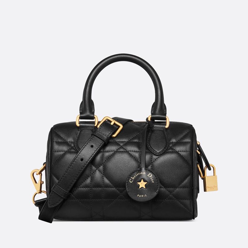 Inside, functionality meets elegance. The interior boasts a zip pocket and a slip pocket, providing ample space for your essentials while maintaining a sleek silhouette. Additionally, the signature leather key holder, featuring an antique gold-finish metal star and key, adds a touch of luxury to your everyday carry. The compact dimensions of 20.5 x 13.5 x 12 cm make it the perfect companion for both day and night adventures.