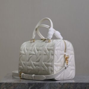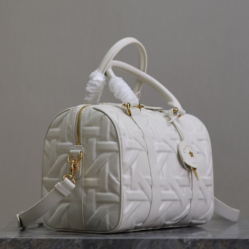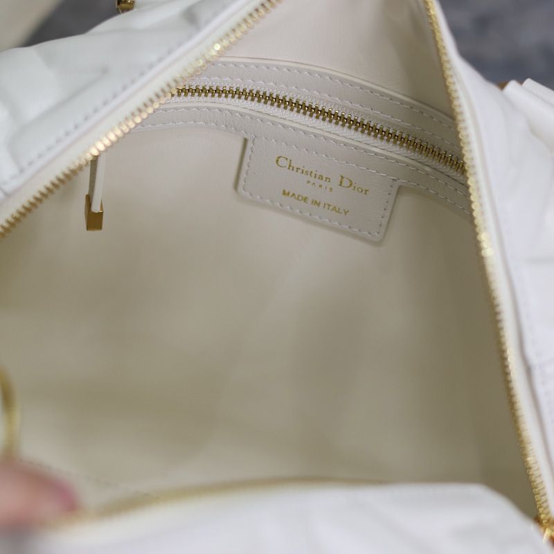 Embark on a journey of style and sophistication with the Dior Groove 25 Bag, a perfect companion for every adventure. This exquisite White bag, crafted from premium calfskin, features a stunning Graphic Cannage effect that sets it apart as a true statement piece.