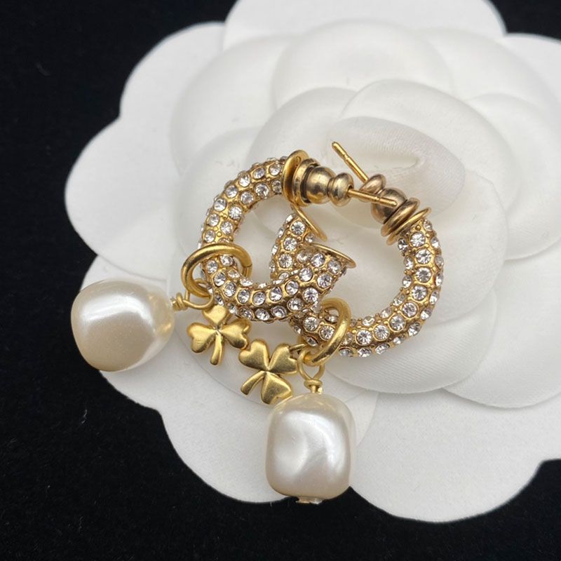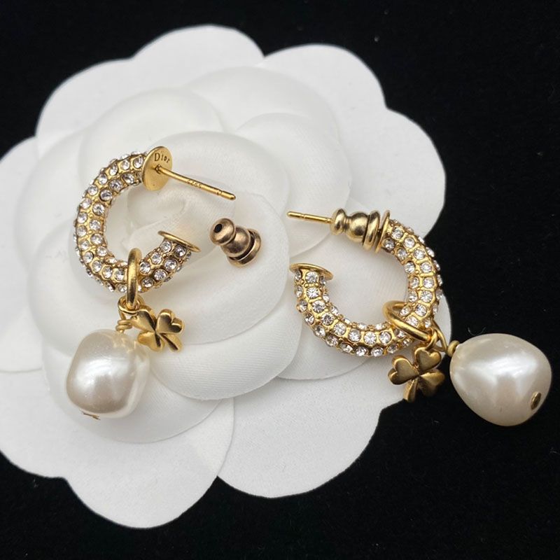 Buy Dior Hoop Earrings Metal with Crystals, Resin Pearls and Clover Charms Gold from www.diorstoreoutlets.com Cheap Dior Outlet Sale Store with 75% Discount, Fast Delivery and Free Worldwide Shipping…
