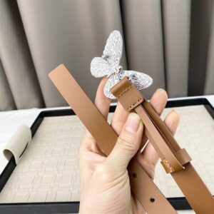 Are you ready to elevate your style? The Dior Metamorphose Belt, crafted from exquisite Ultrasmooth Calfskin, serves as your ultimate passport to sophistication. Adorned in a rich brown hue and complemented by a stunning Silver CD butterfly buckle, this belt seamlessly blends elegance with functionality.
