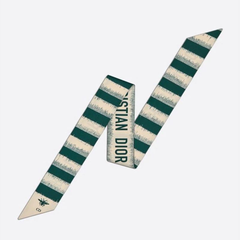 Transform your look with the exquisite Dior Mitzah Twill D-Stripes Motif in a vibrant green. This luxurious scarf is not just an accessory; it’s a celebration of elegance that transports you to the lavish streets of Paris. Crafted from 100% silk, the fabric flows gracefully, providing both comfort and style.