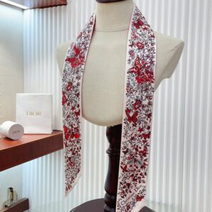 Crafted from 100% premium silk, this exquisite twill features a captivating butterfly motif inspired by global travels. The vivid red hue adds a bold touch, making it a standout addition to your wardrobe. Each piece is adorned with a jacquard band that showcases the iconic CHRISTIAN DIOR signatures at the back, a testament to the designer’s commitment to quality and elegance.