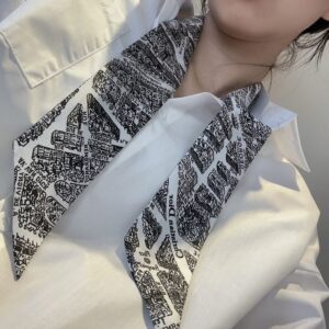 Dreams of elegance come alive with the Dior Mitzah Twill in Plan de Paris Motif Silk White. This exquisite white twill embodies sophistication, making it a perfect accessory for the holiday season or any special occasion. Crafted from 100% silk, it showcases a stunning Plan de Paris motif, adding a touch of Parisian charm to your ensemble.