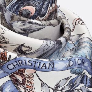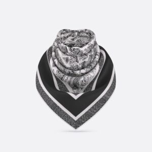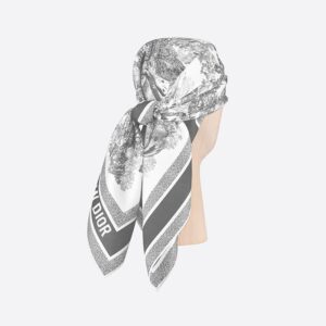 Unveiling the Dior Mitzah Twill in the exquisite Toile de Jouy Voyage motif, this silk masterpiece is more than just an accessory; it’s a fashion revolution. The pristine white hue coupled with the intricate design makes it a statement piece that captures elegance and sophistication.