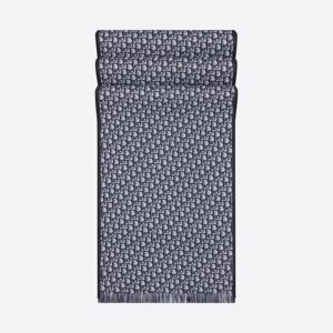 Dior Reversible Scarf University Oblique Motif Silk and Wool Navy Blue