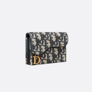 Dior Saddle Jasmine Gusset Card Holder In Oblique Motif Canvas Blue