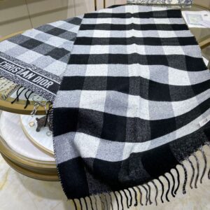 This stunning scarf features a double-sided Check’N’Dior motif, ensuring that you can showcase your unique style from any angle. Adorning the fabric is the iconic CHRISTIAN DIOR signature, symbolizing a legacy of unparalleled craftsmanship and attention to detail. The fringed edges add a touch of playful sophistication, making it a versatile piece for both casual and formal occasions.