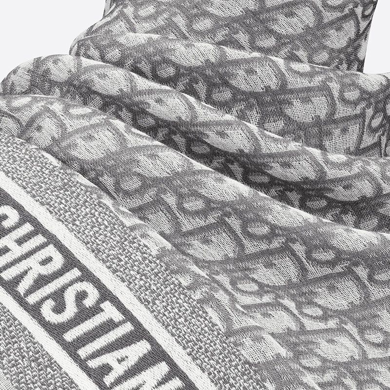 Dior Shawl D-Oblique Motif Wool, Silk and Cashmere Grey