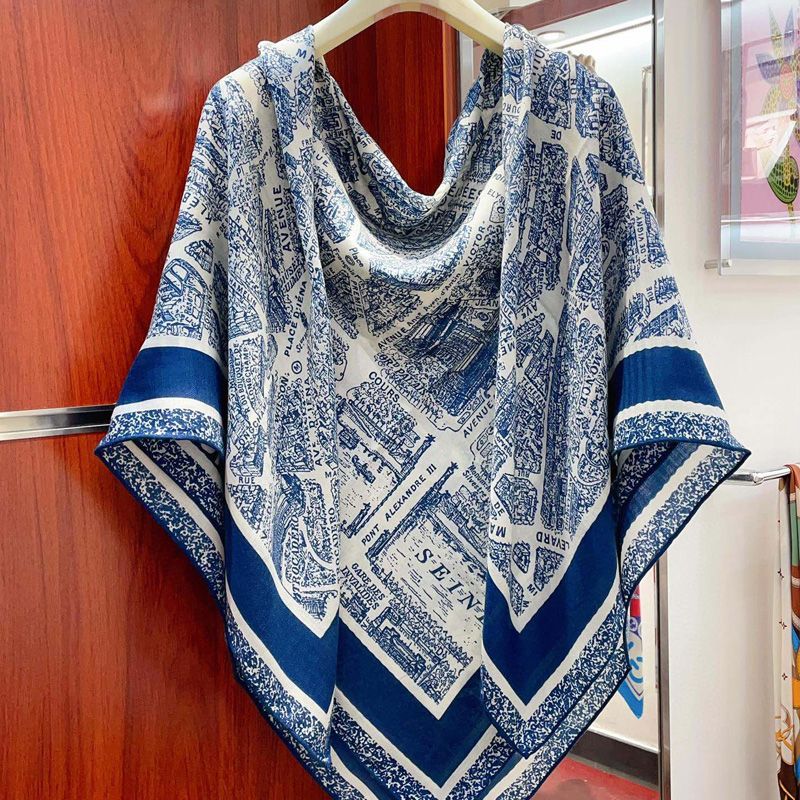 Embrace the essence of luxury with the Dior Shawl In Plan de Paris Motif Cashmere and Silk Blue, where elegance meets artistry. Inspired by the timeless beauty of Paris, this exquisite shawl is crafted from a sumptuous blend of 70% cashmere and 30% silk, offering an unparalleled softness and warmth that caresses the skin.