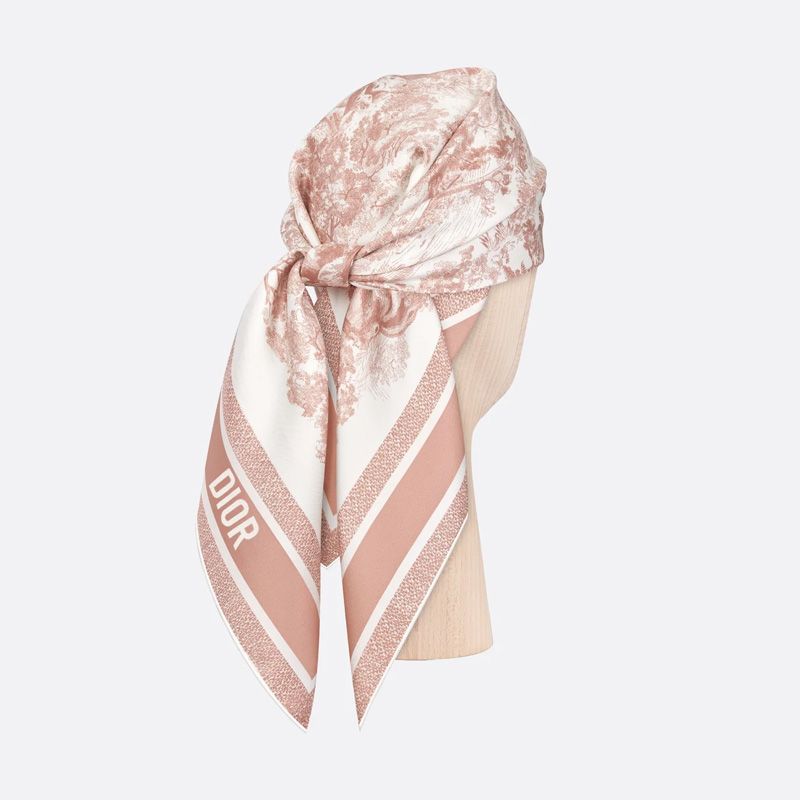 Dior Square Scarf In Toile de Jouy Sauvage Motif Silk Cherry