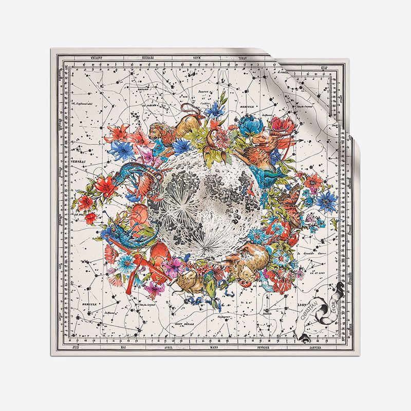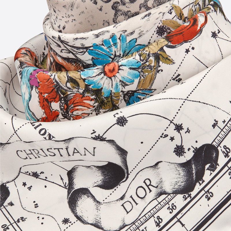 Embark on a luxurious journey with the Dior Square Scarf Zodiac Motif Silk White, a timeless accessory that elevates any ensemble. Crafted from 100% silk, this exquisite scarf showcases a stunning multicolor Zodiac print that speaks to both elegance and individuality.