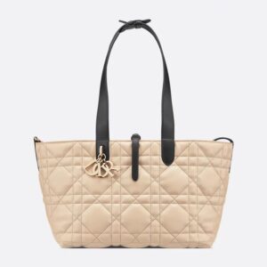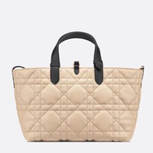 Dior Toujours Bag In Macrocannage Calfskin Apricot/Black