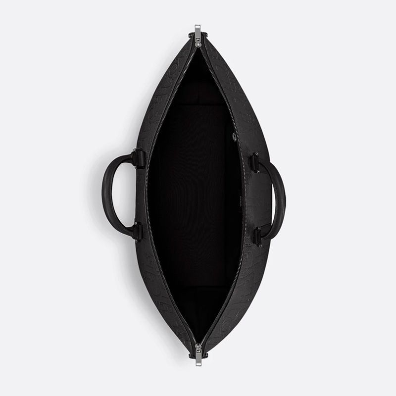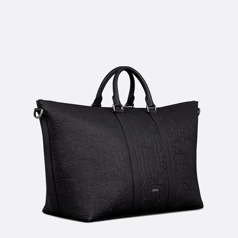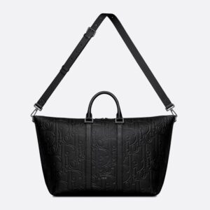 Elevate your travel style with the Dior Weekender 40 Bag, expertly crafted from luxurious Dior Signature Grained Calfskin in a timeless black hue. This sophisticated bag is designed for those who appreciate the finer things in life. Featuring sturdy double handles, it offers both durability and elegance, making it the perfect companion for any adventure.