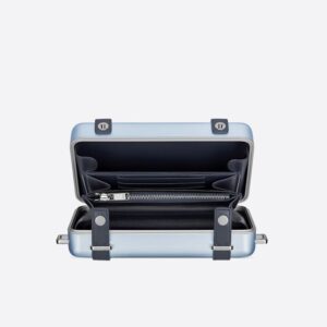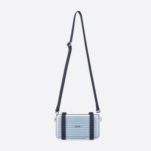 Artistry meets functionality in the exclusive Dior x Rimowa Personal Clutch Aluminum Sky Blue. This stunning clutch, reminiscent of a serene sky at dawn, showcases a refined combination of aluminum and calfskin, offering a touch of luxury that is both durable and lightweight.